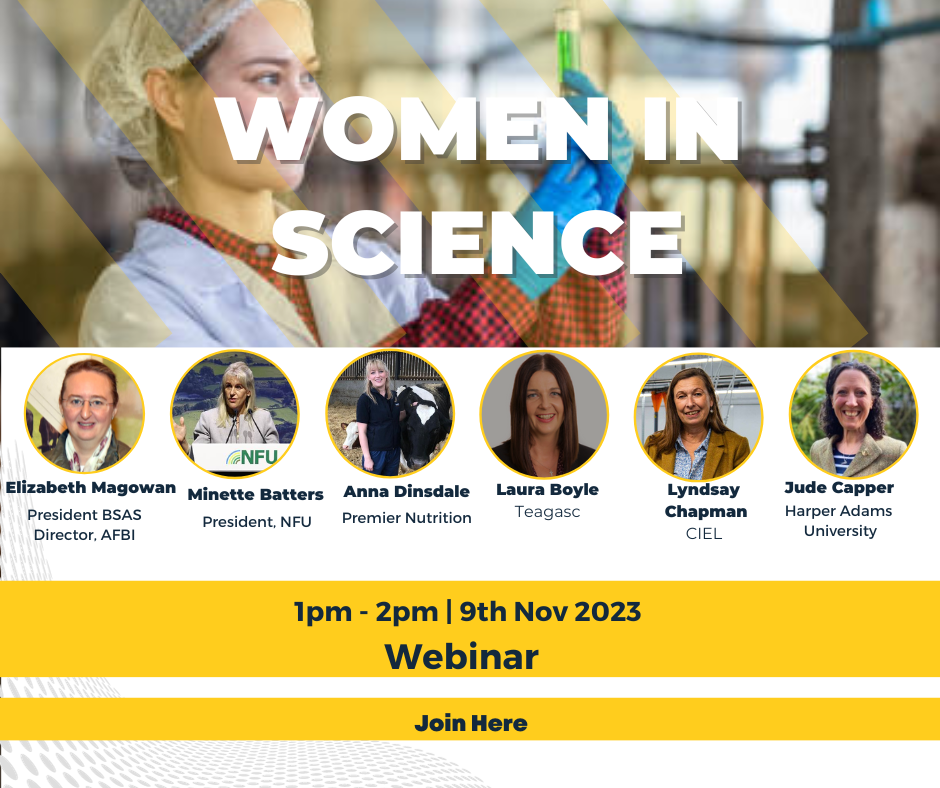 We are pleased to invite members to a special webinar on Thursday 9 November to hear from female leaders working in academia, industry and the British Society of Animal Science.